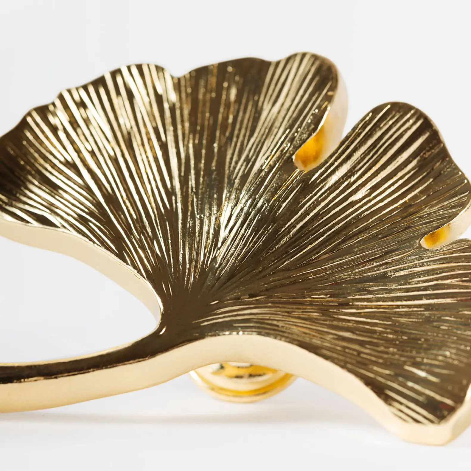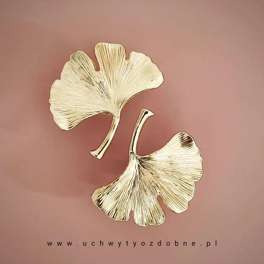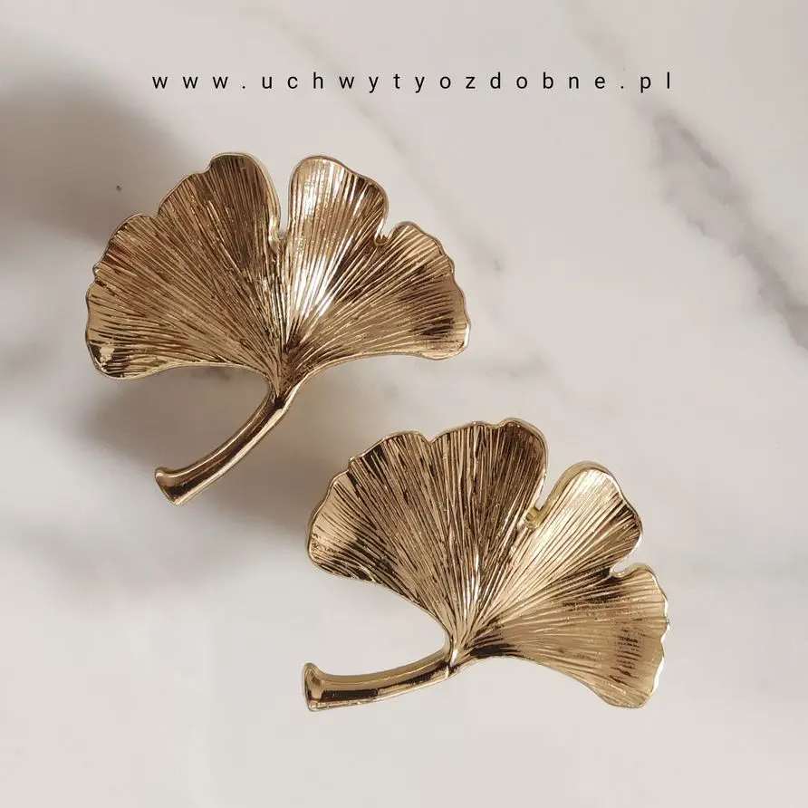 Uchwyt dekoracyjny liść Miłorzębu w kolorze złotym połysk. To przepiękna gałka wykonana ze stopu cynku i aluminium oraz pokryta powłoką galwaniczną w kolorze złota. Dzięki małemu rozmiarowi 54mm, uchwyt odmieni niejeden mebel, a zwłaszcza fronty szafek, lekkich szuflad, komód, wiszących szafek kuchennych. Jej wyjątkowe wykończenie nadaje wnętrzom w różnych stylach ekskluzywnego sznytu.