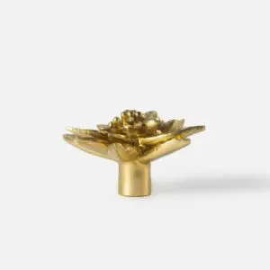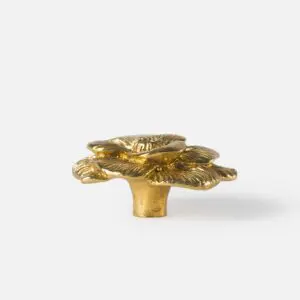Uchwyt meblowy w kształcie Kwiatka 3, w całości wykonany z mosiądzu, wykonany metodą odlewniczą. To idealny produkt, który ozdobi Twoje meble, takie jak komody.