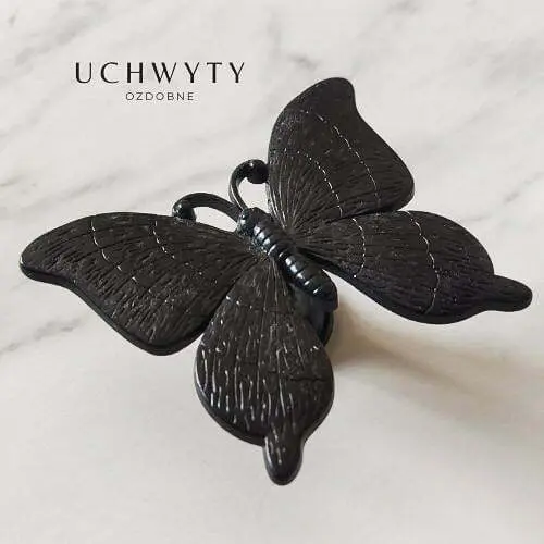 Przepiękny uchwyt do mebli w kształcie Motyla w kolorze czarnym matowym, to nasza budżetowa propozycja ozdobnej gałki, która sprawdzi się we wnętrzach z motywami roślinnymi. Idealnie będzie współgrał z tapetami, we wnętrzach w stylu boho, glamour. Ten uchwyt sprawdzi się na szafkach wiszących, lekkich szufladach, komód, toaletek i stolików nocnych, sprawi że każdy mebel będzie wyglądał wyjątkowo.
