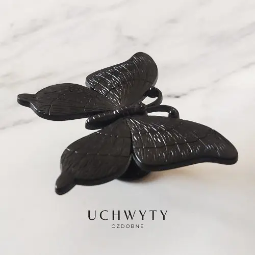 Uchwyt meblowy gałka 62x50mm Motyl w kolorze czarnym