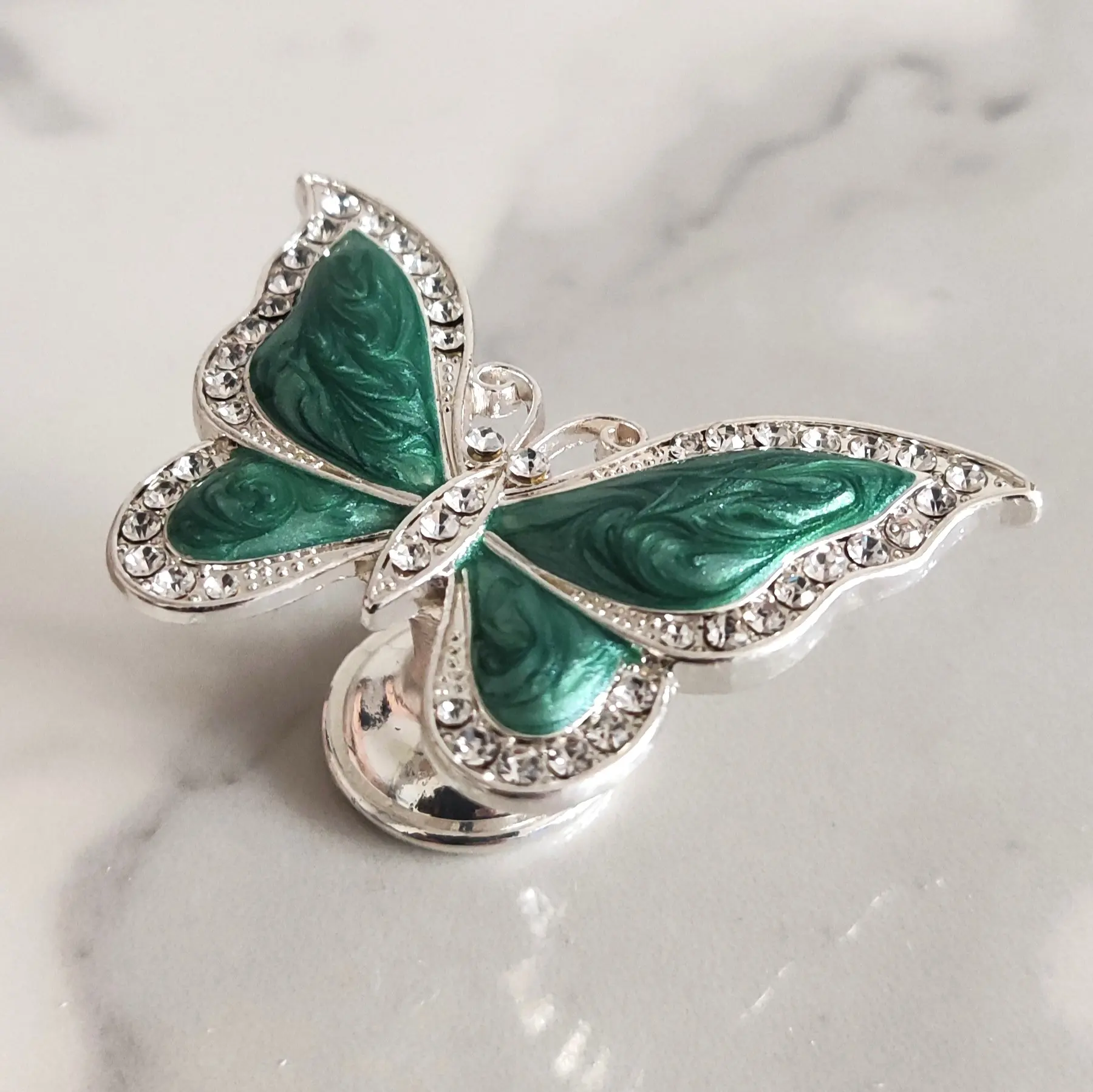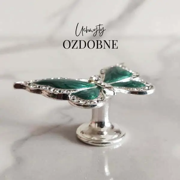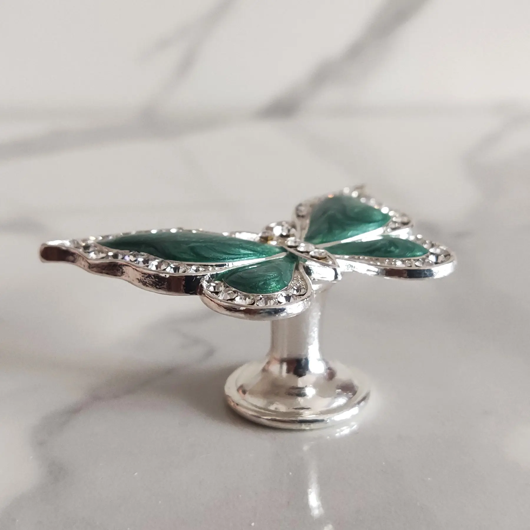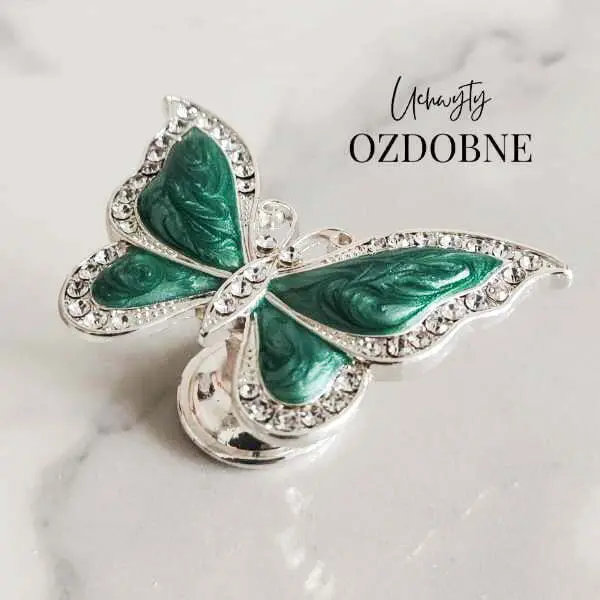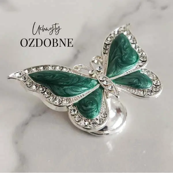 Uchwyt meblowy Motyl kolor zielony i srebrny z cyrkoniami