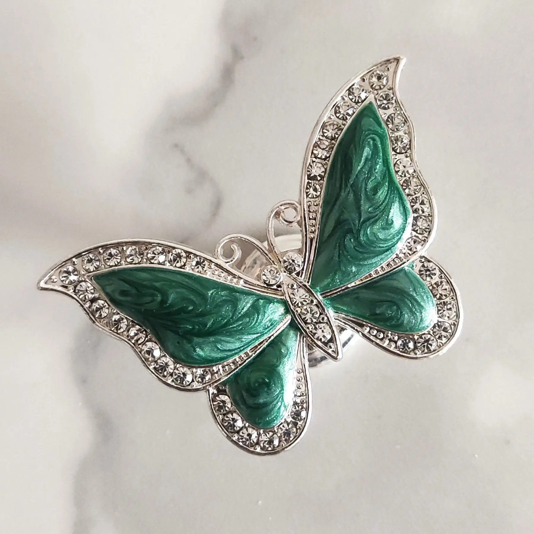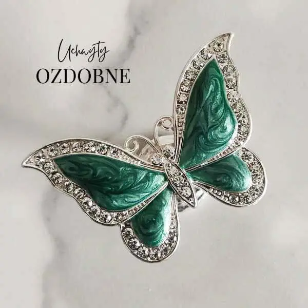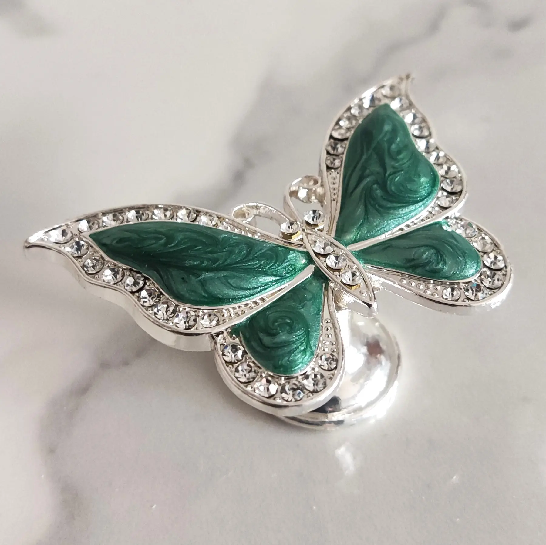 Uchwyt meblowy Motyl kolor zielony i srebrny z cyrkoniami
