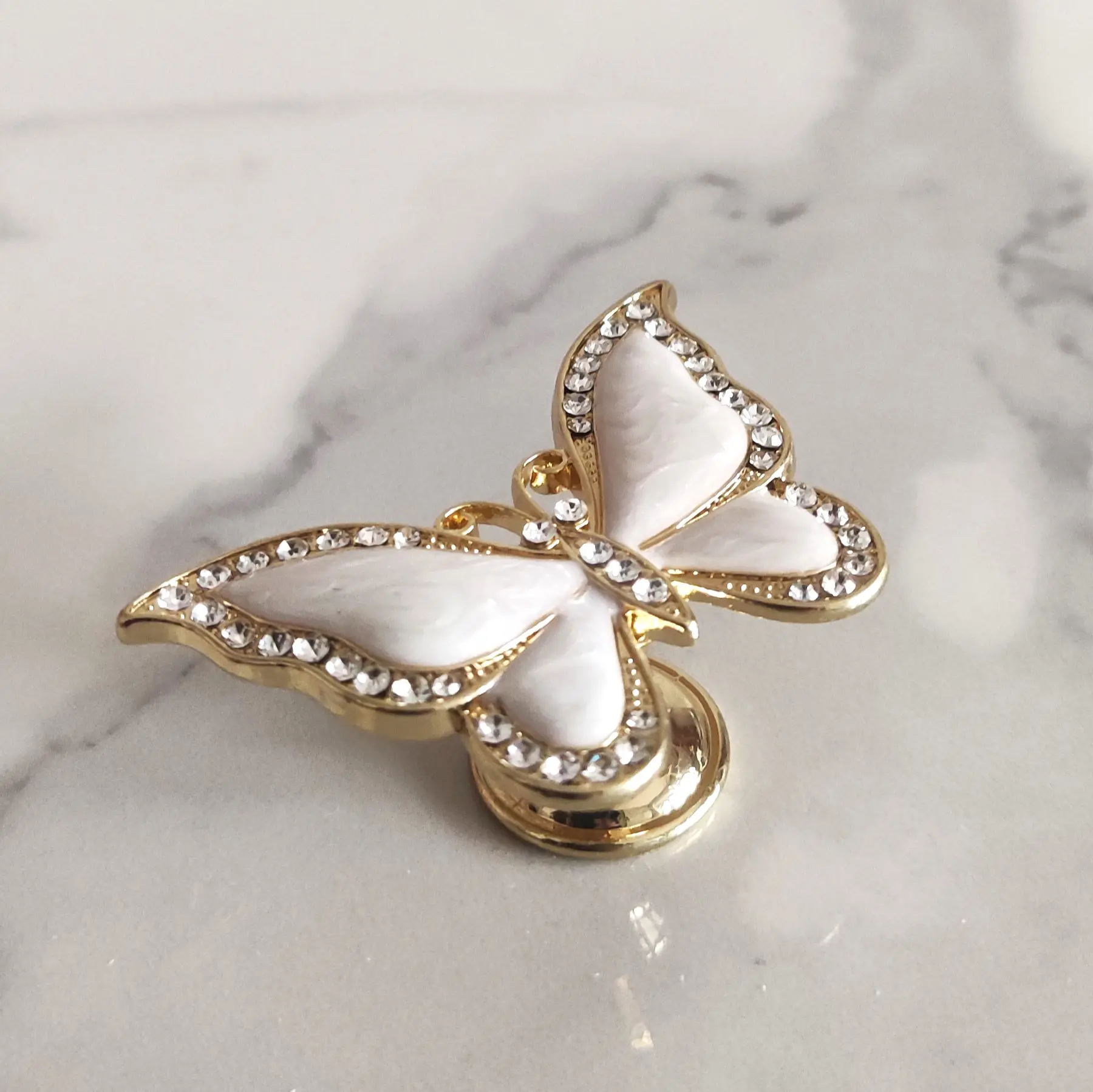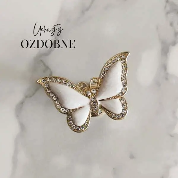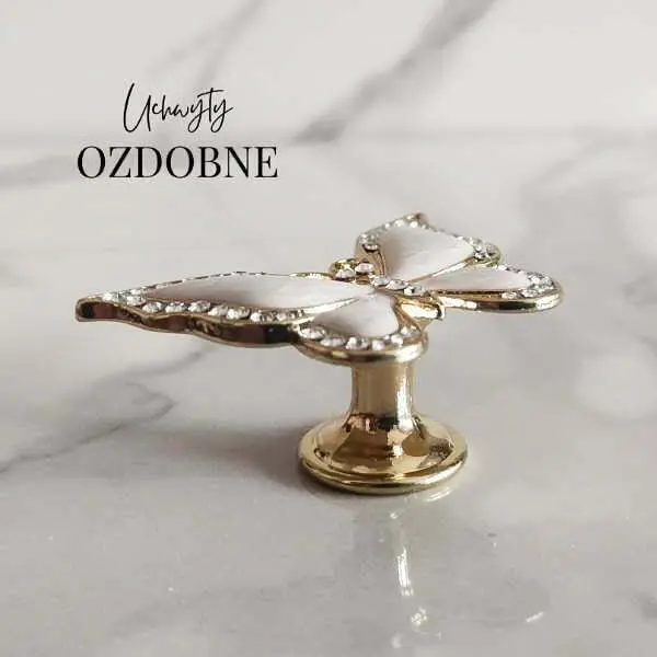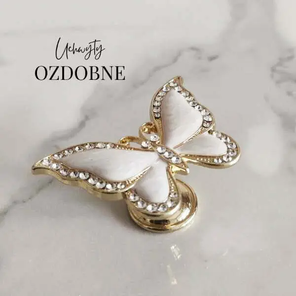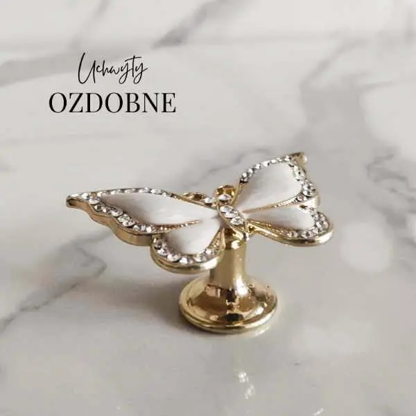 Uchwyt meblowy Motyl w kolorze białym i złotym z cyrkoniami
