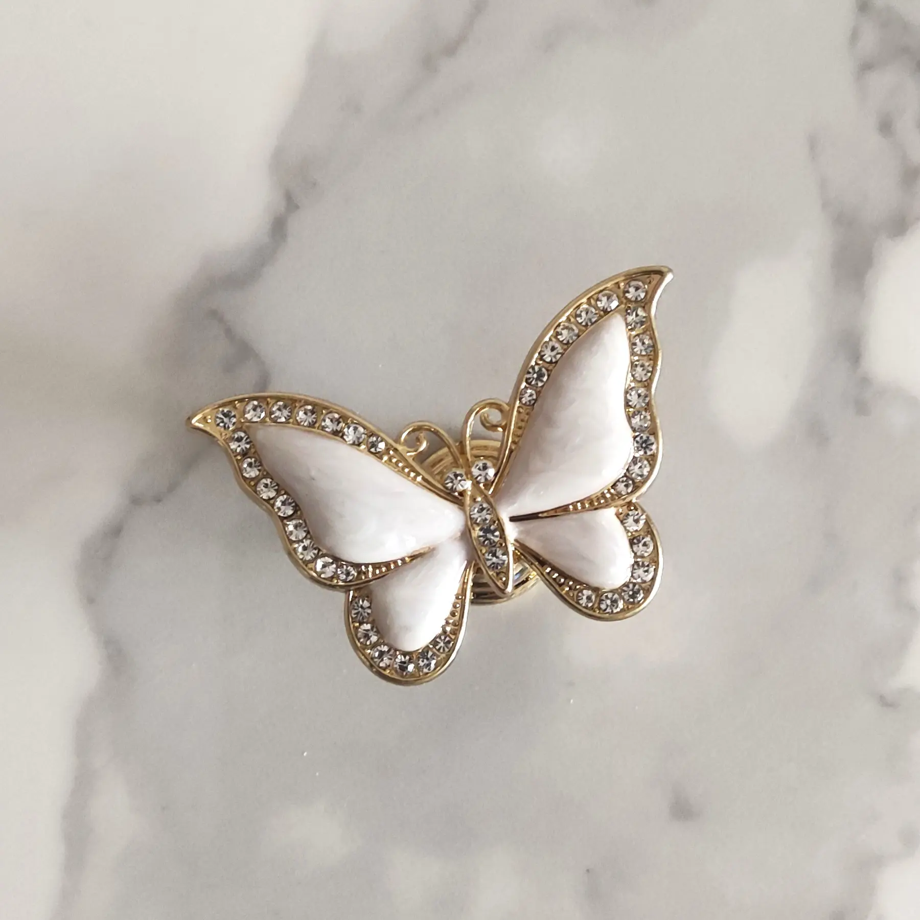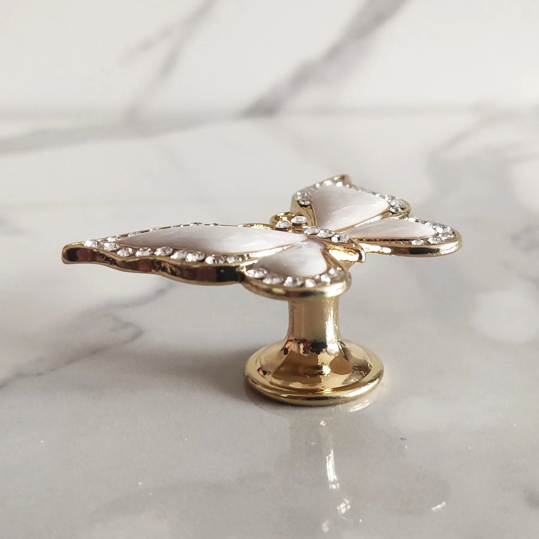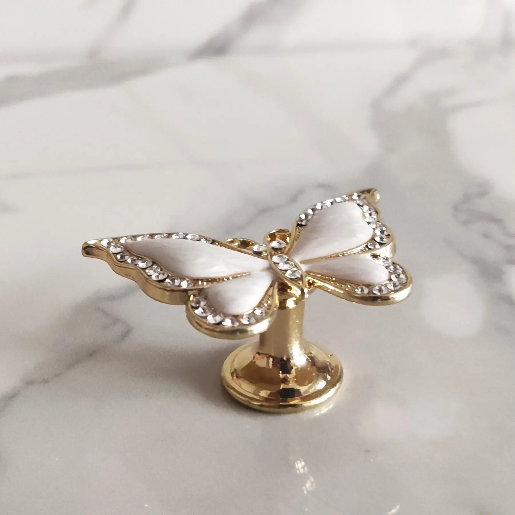 Uchwyt meblowy Motyl w kolorze białym i złotym z cyrkoniami