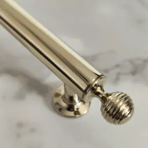 Uchwyt meblowy relingowy mosiężny szczotkowany z gałeczkami na końcach, to model uchwytu idealny do mebli kuchennych, występuje w wielu kolorach.