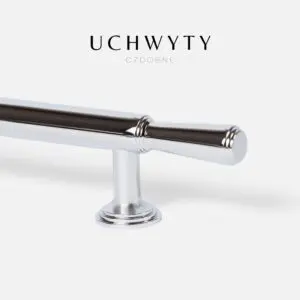 Mosiężny uchwyt meblowy T-bar 55 mm z łezkami na końcach model 1. Uchwyt do mebli o powierzchni srebrny szczotkowany.