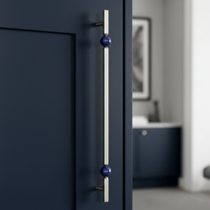 Mosiężny uchwyt meblowy reling 300 mm z łezkami na końcach model 2. Uchwyt do mebli w kolorze srebrny połysk. Występuje w wielu kolorach.