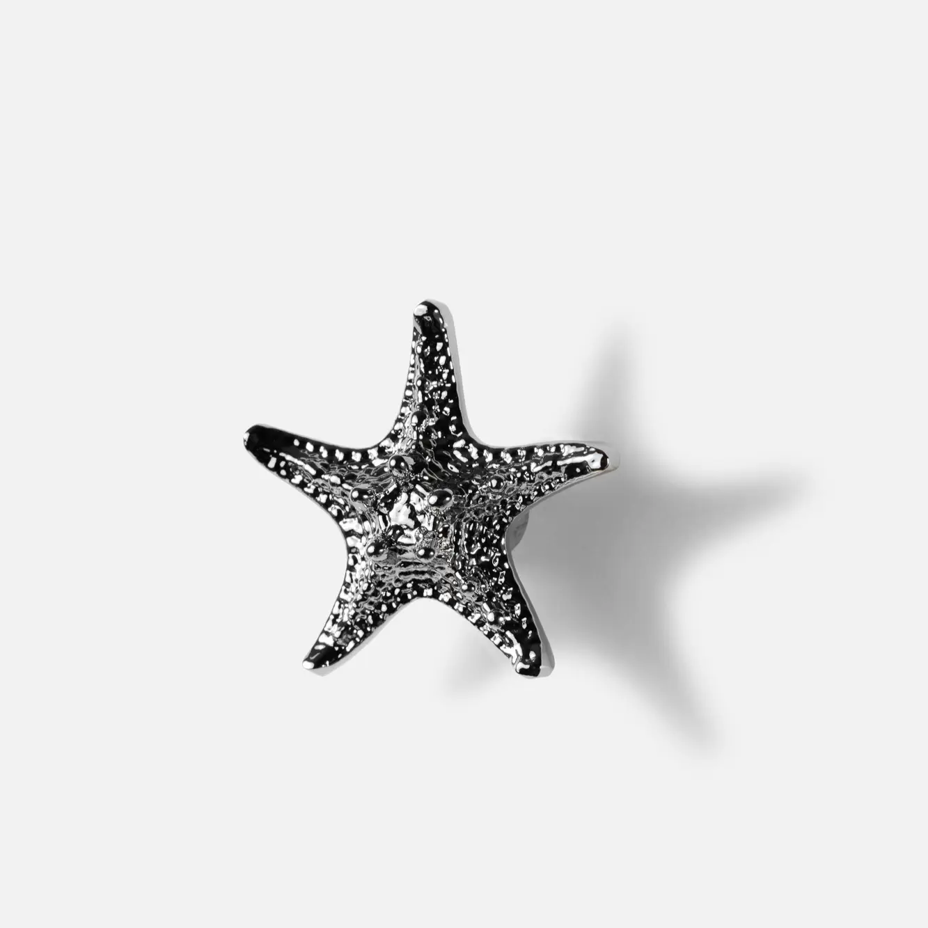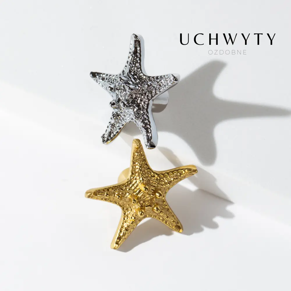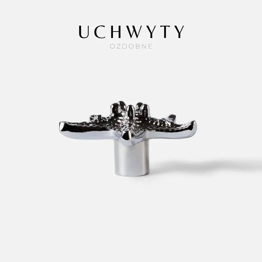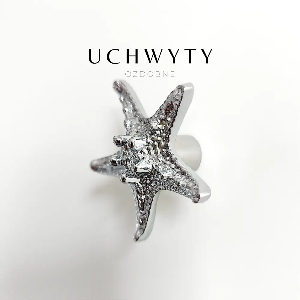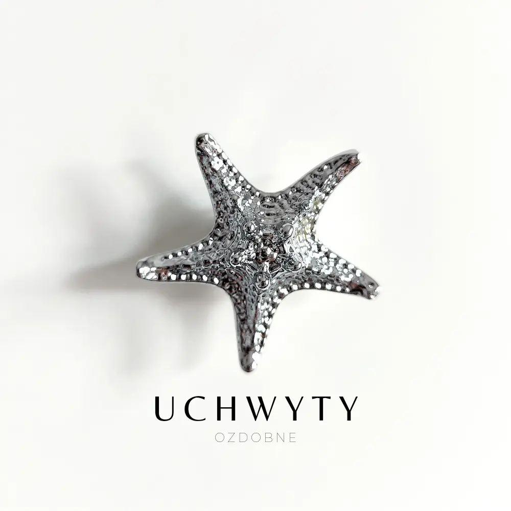 Mosiężna gałka meblowa Rozgwiazda, w całości wykonana jest z mosiądzu, wykończona w srebrnym połysku. Uchwyt meblowy w kształcie Rozgwiazdy to piękna gałka, która pomoże odmienić Wasze meble, takie jak szafki wiszące w kuchni, komody, kredensy, szafki oraz lekkie szuflady. Podobnie jak wiele naszych produktów, kształt uchwytu Rozgwiazdy, został zaczerpnięty z natury, mimo to, w użyciu jest bardzo wygodny i funkcjonalny. Gałka do mebli będzie się pięknie prezentować we wnętrzach w stylu rustykalnym, ale również sprawdzi się w pomieszczeniach marynistycznych i nowoczesnych.
