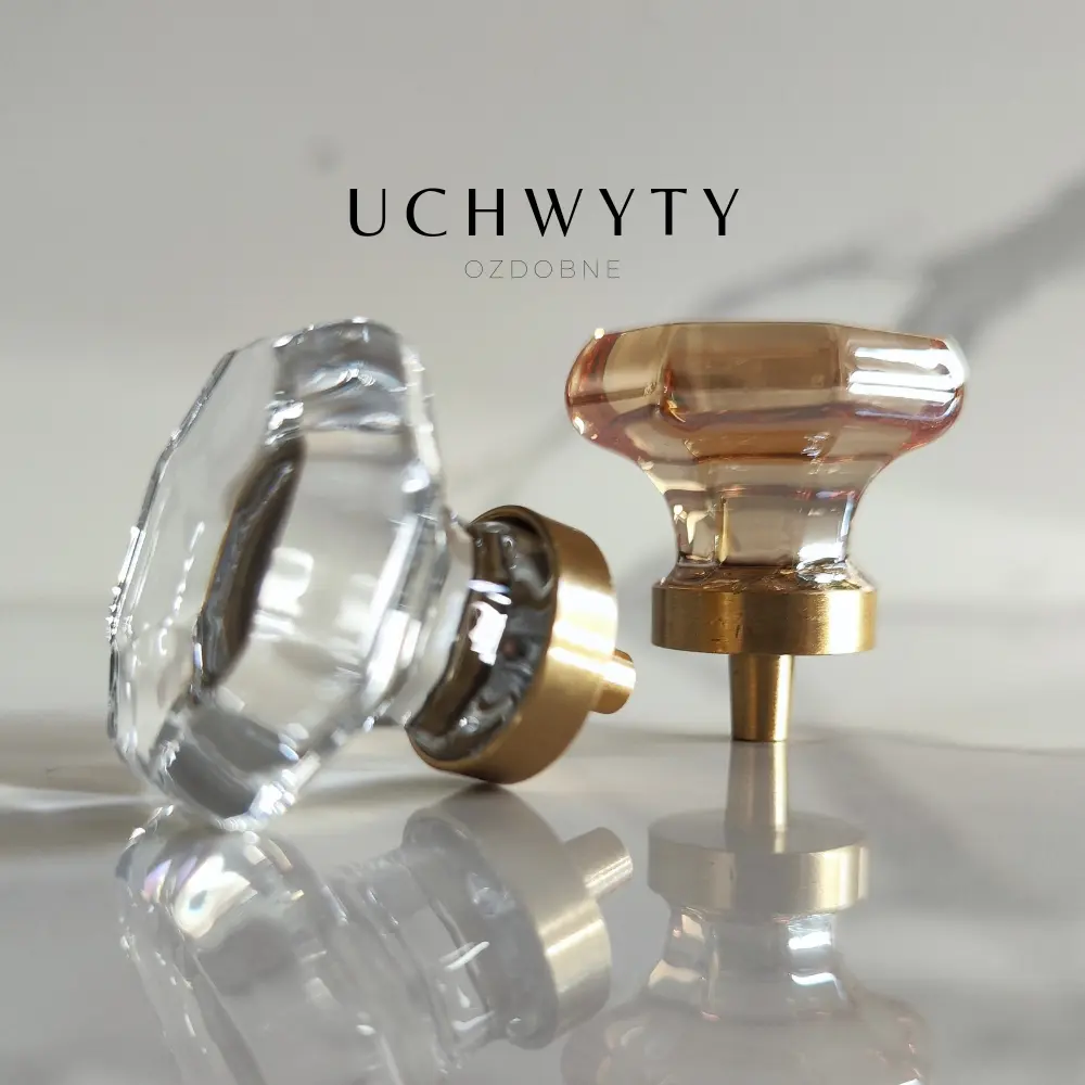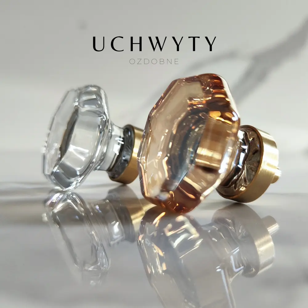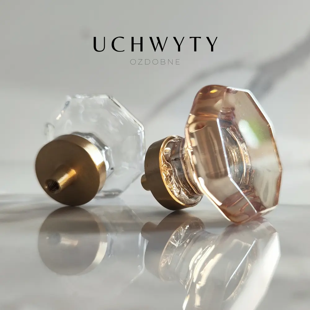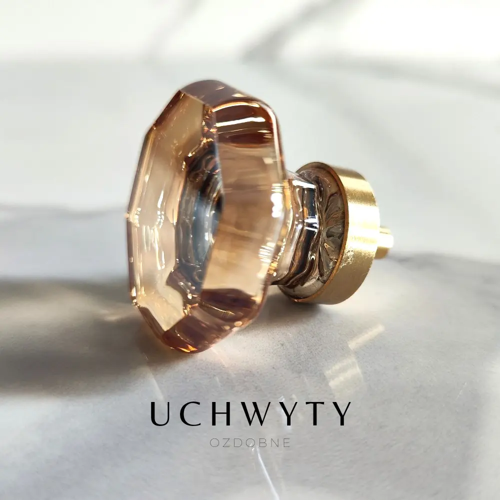 Uchwyt meblowy – gałka ośmiokąt kryształ szampański