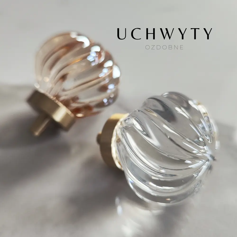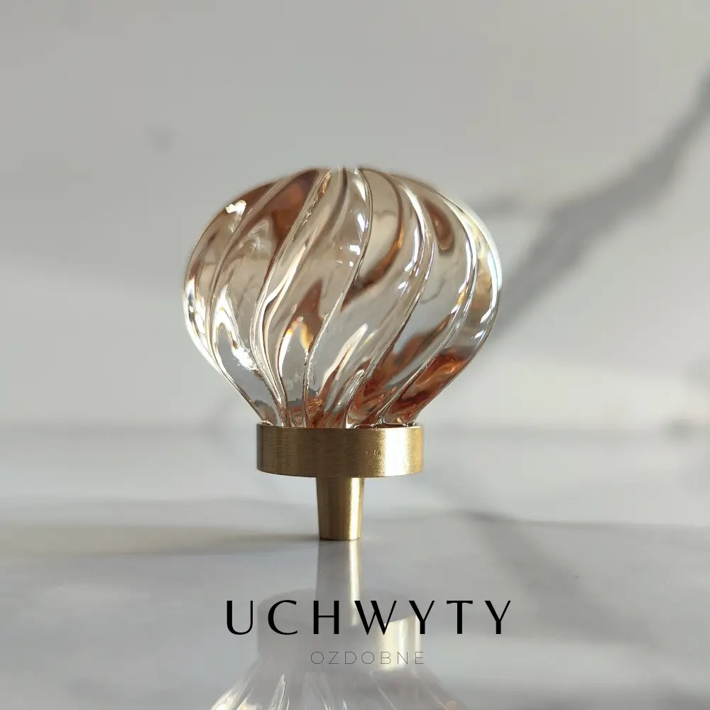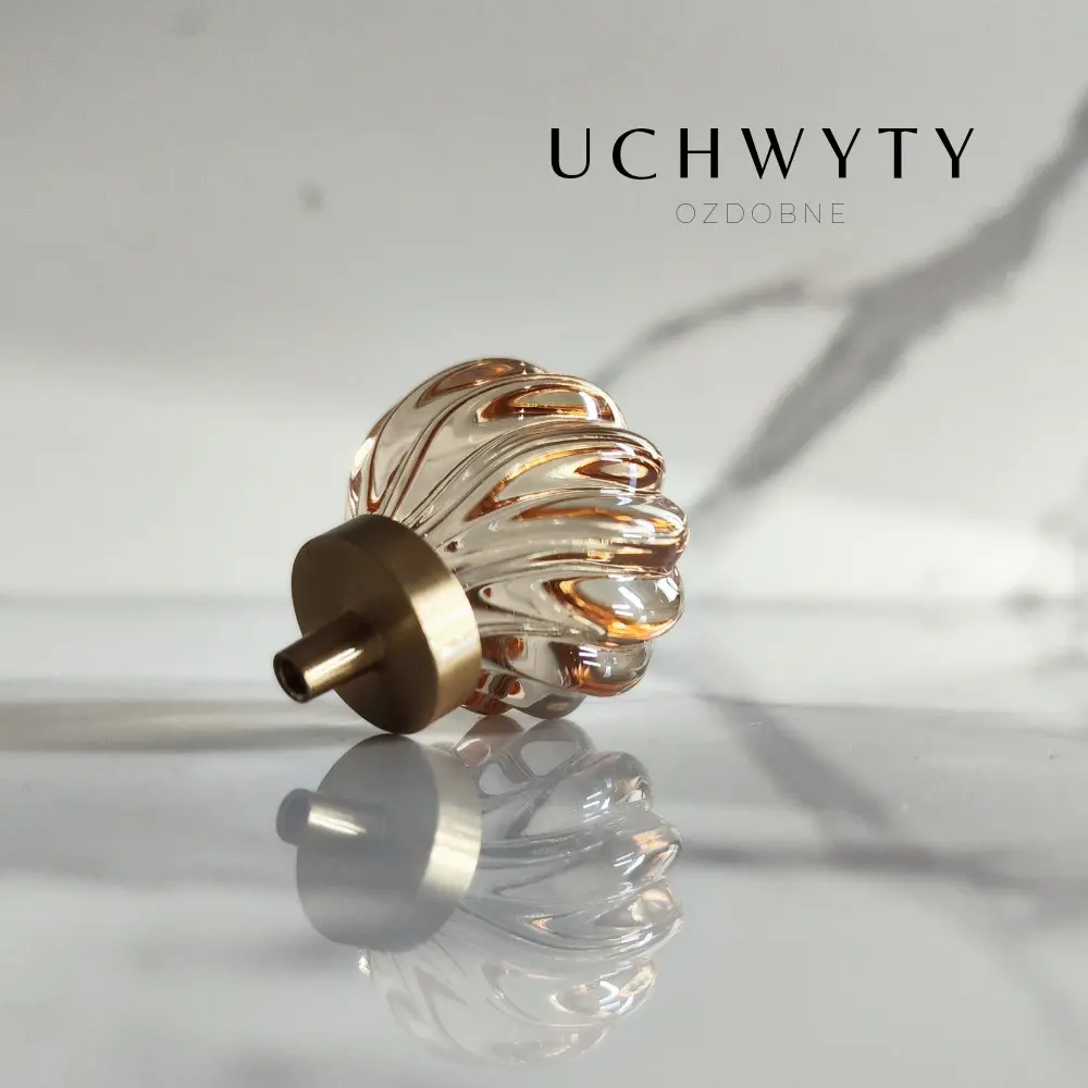 Gałka meblowa ze skośnymi prążkami kryształ szampański