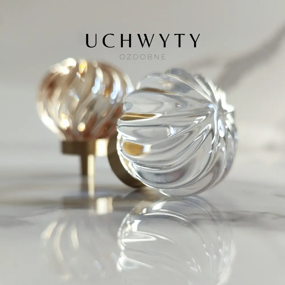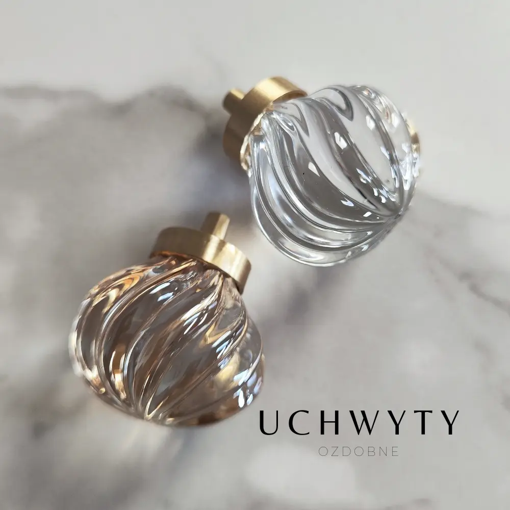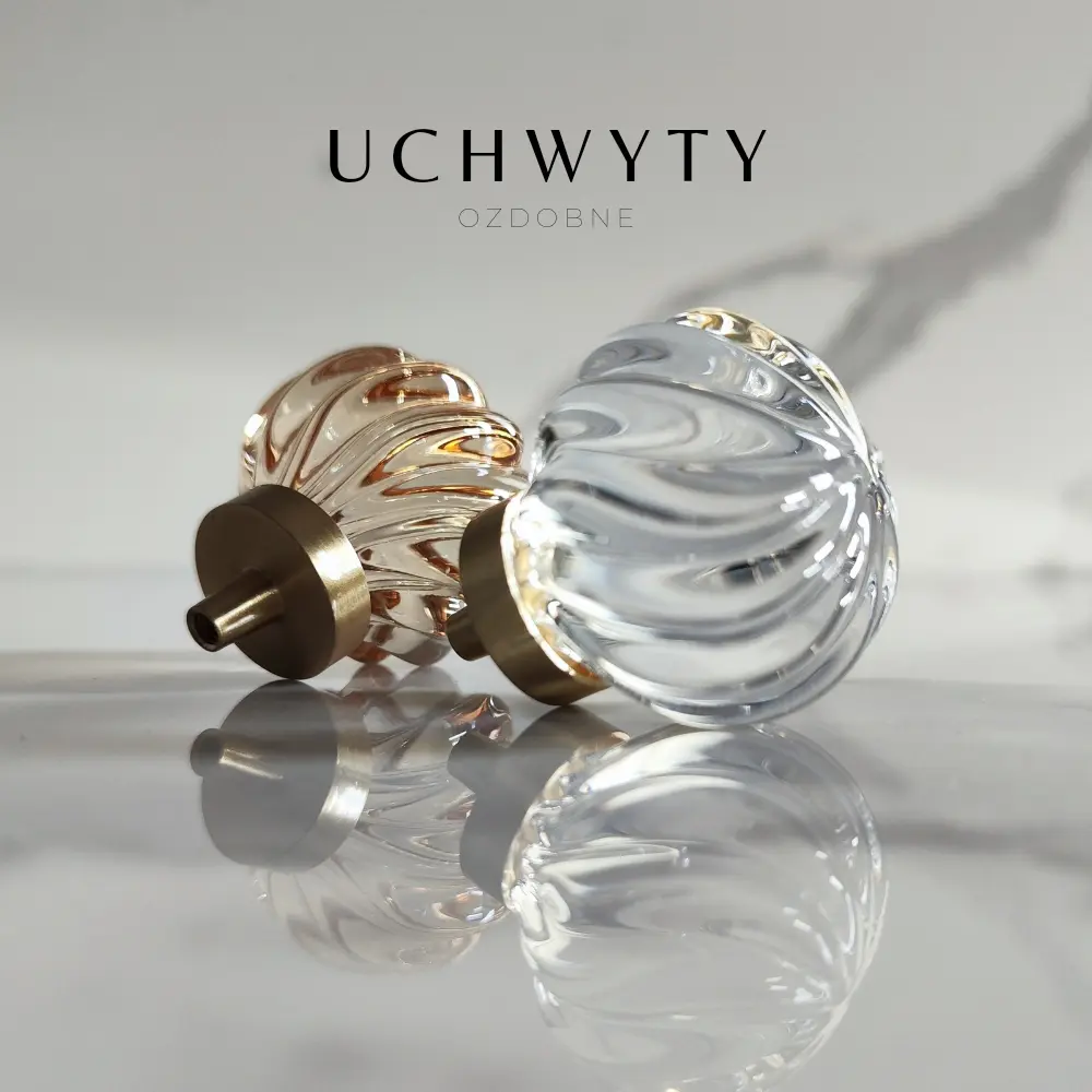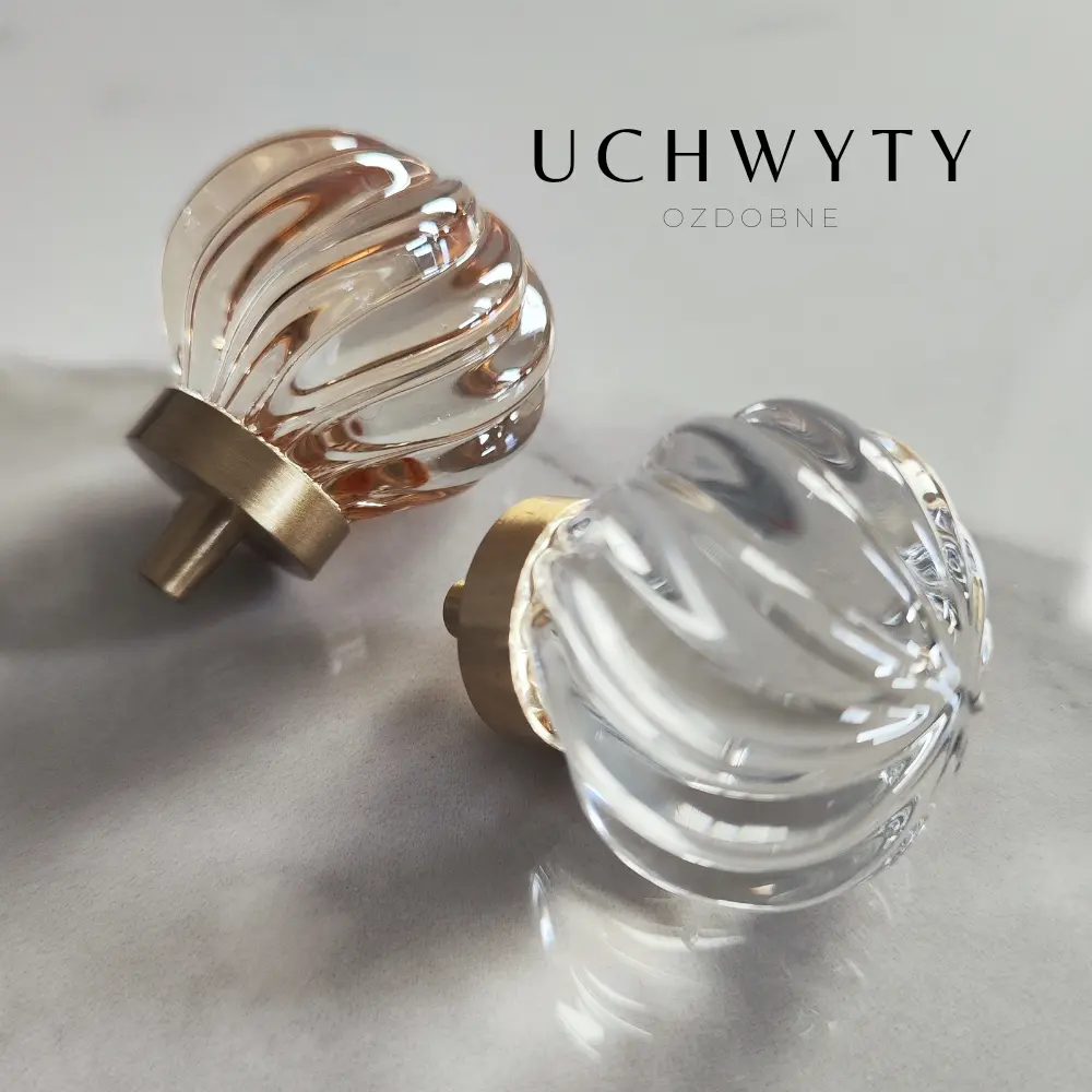 Gałka meblowa ze skośnymi prążkami kryształ szampański
