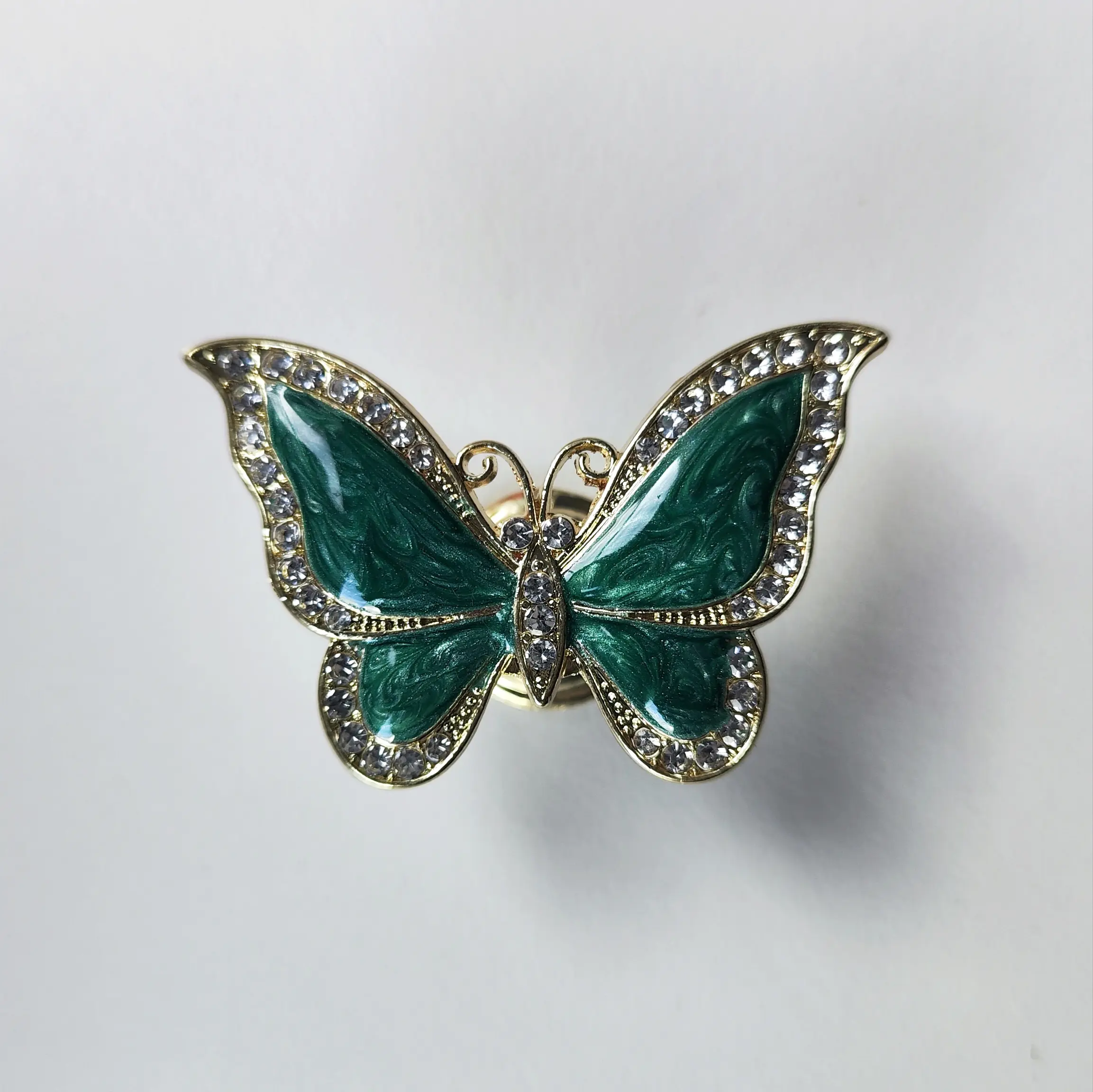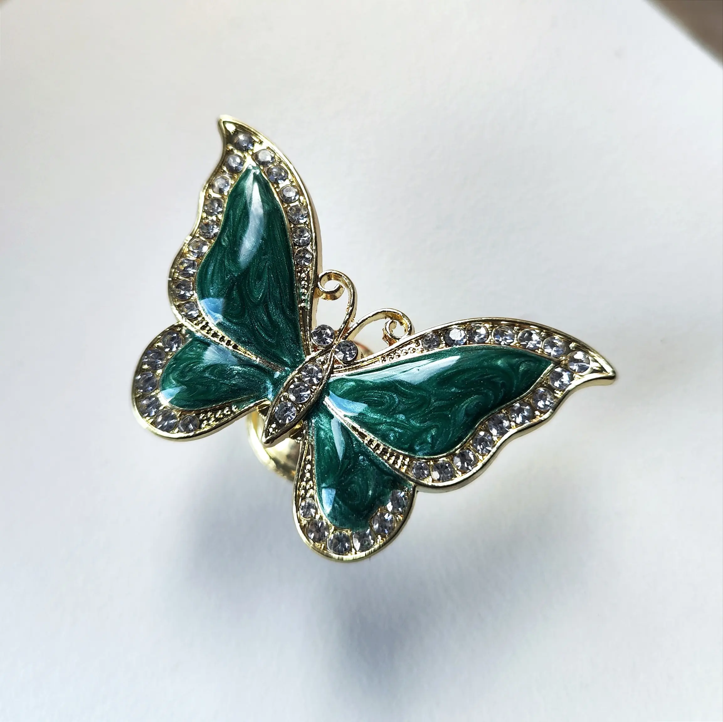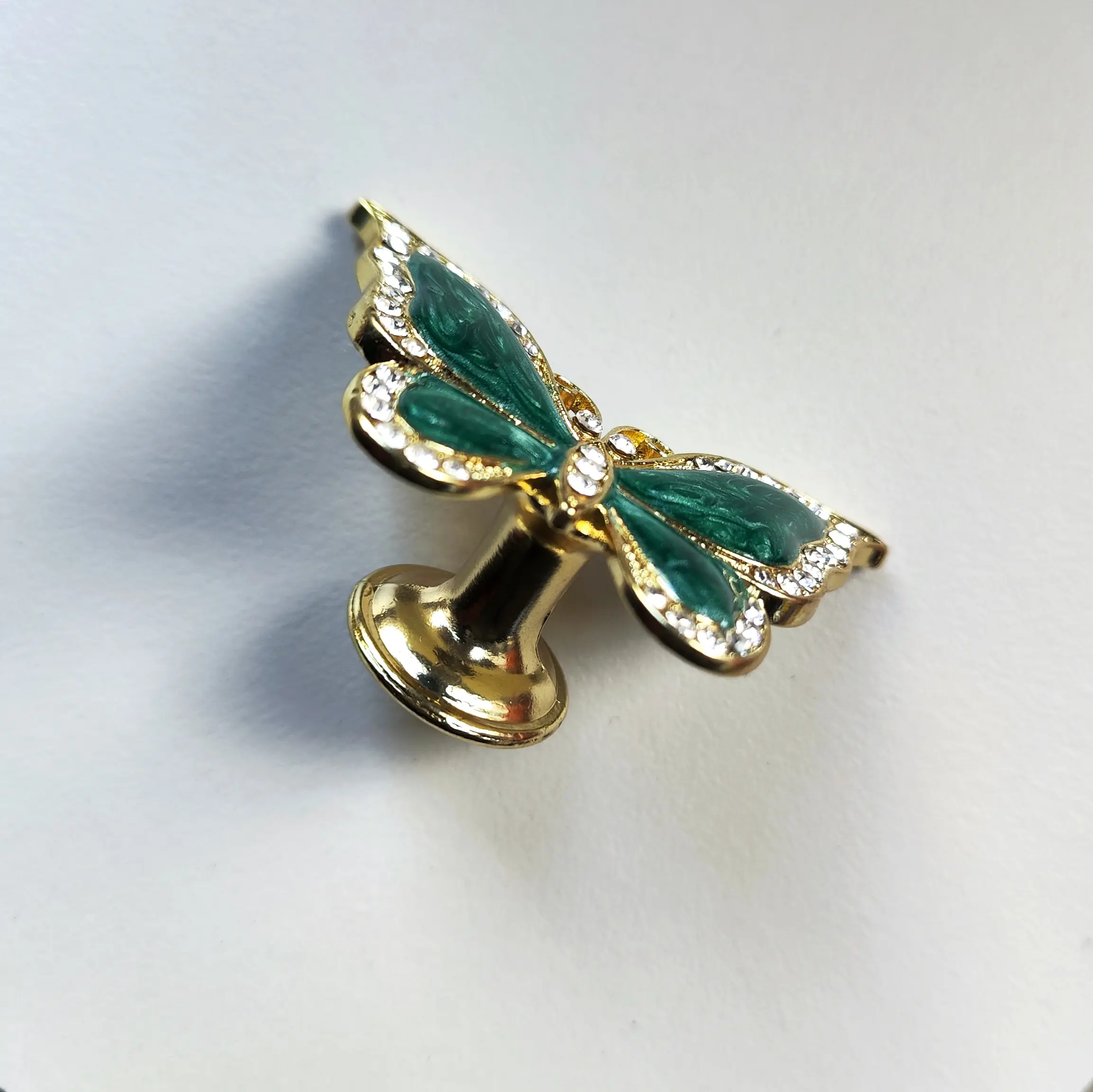 Uchwyt meblowy Motyl kolor zielony i złoty z cyrkoniami