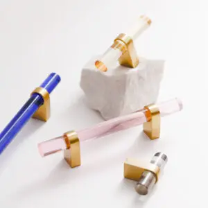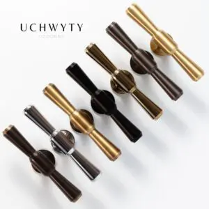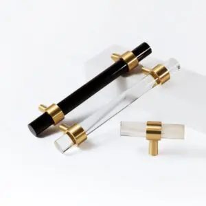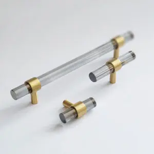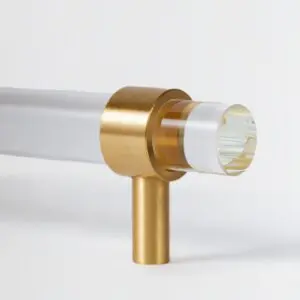 Uchwyt T-bar wykonany ze szkła kryształowego i mosiężnego elementu mocującego. Model tego uchwytu występuje w wielu kolorach i długościach.