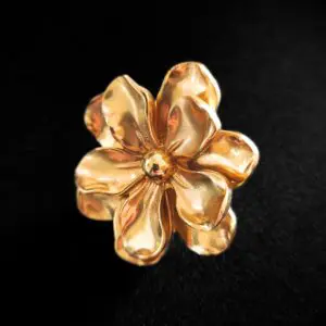 Uchwyt meblowy w kształcie Kwiatka 3, w całości wykonany z mosiądzu, wykonany metodą odlewniczą. To idealny produkt, który ozdobi Twoje meble, takie jak komody.