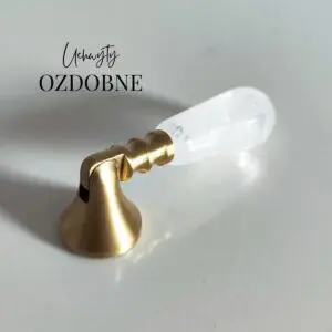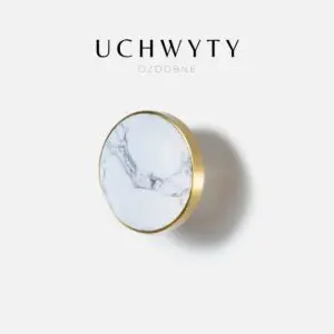 Piękna mosiężna gałka meblowa z białym kamieniem z szara żyłką, to idealna propozycja do ozdobienia Twojego wyjątkowego wnętrza.