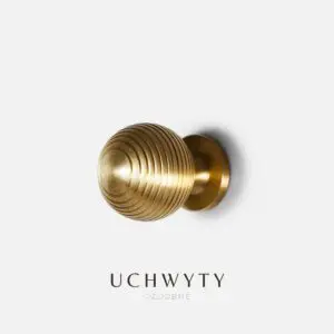 Złota gałka do mebli wykonana z mosiądzu. Klasyczna gałka meblowa cechuje się dokładnością wykonania i pokryta wytrzymałą powłoką dekoracyjną PVD.