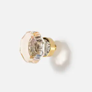 Mosiężna gałka meblowa ośmiokąt, szkło kryształowe kolor przezroczystym. Uchwyt występuje w wielu kształtach i dwóch kolorach.