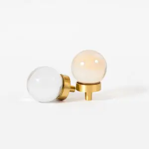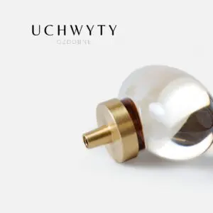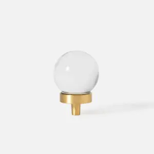 Mosiężna gałka meblowa w kształcie kulki, szkło kryształowe kolor przezroczysty. Uchwyt występuje w wielu kształtach i dwóch kolorach.