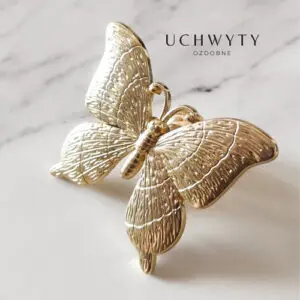Ozdobna gałka meblowa w kształcie Motyla w kolorze zloty połysk na jednej stopce. Występuje w różnych wariantach kolorystycznych: złotym, czarnym i srebrnym.