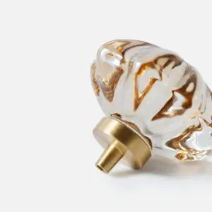 Mosiężna gałka meblowa w kształcie owalu, szkło kryształowe kolor szampański. Uchwyt występuje w wielu kształtach i dwóch kolorach.