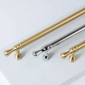 Mosiężny uchwyt meblowy t-bar o długości 80 mm z łezkami na końcach model 2. Uchwyt do mebli w kolorze srebrny połysk. Występuje w wielu kolorach.