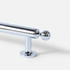Gałka mosiężna kulka z prążkami, w wykończeniu srebrny połysk. Uchwyt występuje w wielu kolorach, w komplecie znajdują się również uchwyty relingowe.