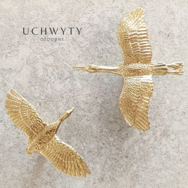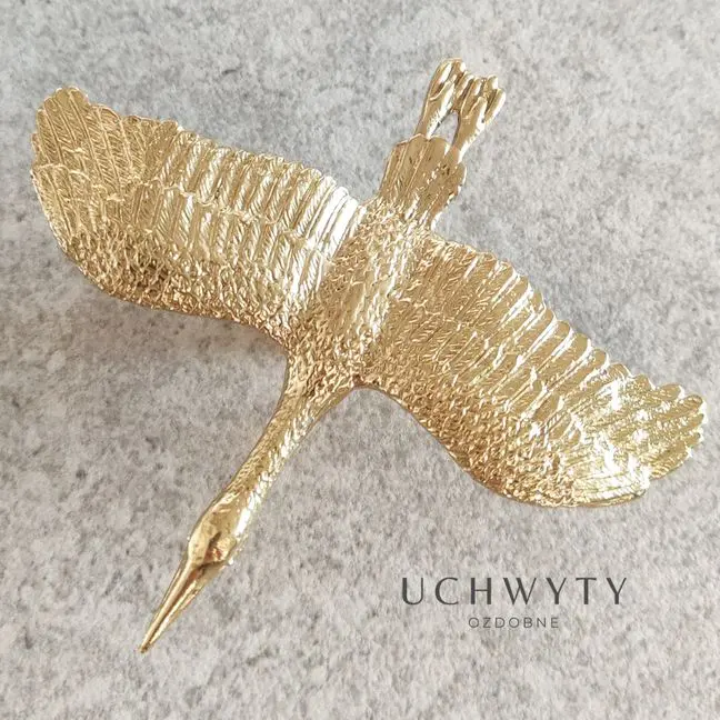Żuraw to uchwyt meblowy, który został w całości wykonany z mosiądzu. Jego wykończenie i szczegółowe detale idealnie odwzorowują kształt ptaka, pozwalając na wykorzystanie tego biżuteryjnego elementu w wielu wnętrzach: nowoczesnych, klasycznych i glamour. Uchwyt ten może być wykorzystany jako piękna ozdoba ścienna, co nawiązuje do aktualnych trendów wnętrzarskich, takich jak tapety lub płytki ceramiczne, które również wykorzystują podobne motywy. Żuraw pięknie będzie wyglądać na mniejszych frontach komód, toaletek oraz szafek RTV.